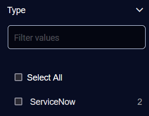 For Type, select the type using the check boxes or Select All. The number of integration syncs of each type is displayed on the right.