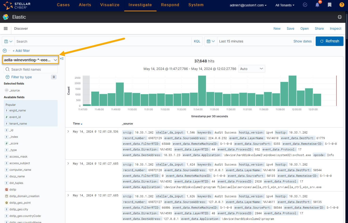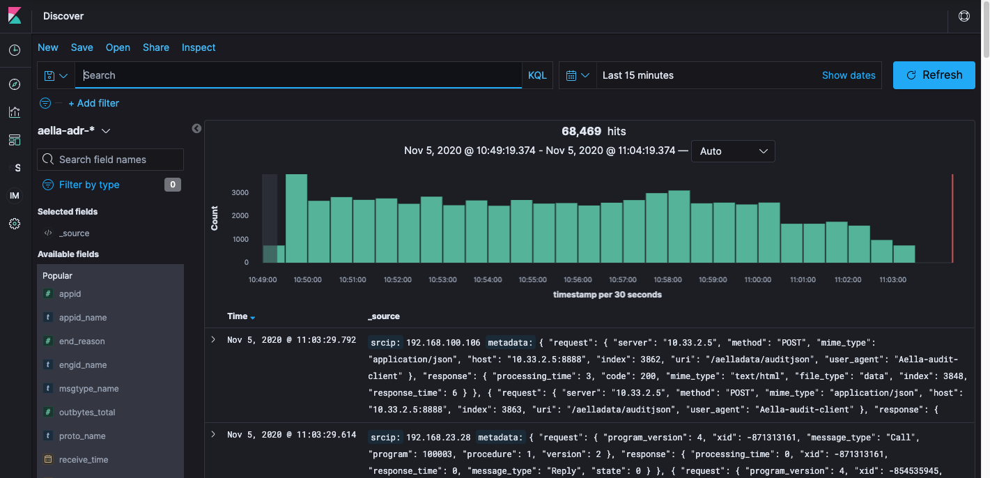 The Kibana plugin lets you analyze the Stellar Cyber data lake using Kibana without leaving Stellar Cyber. You do not need to log in to Kibana.
