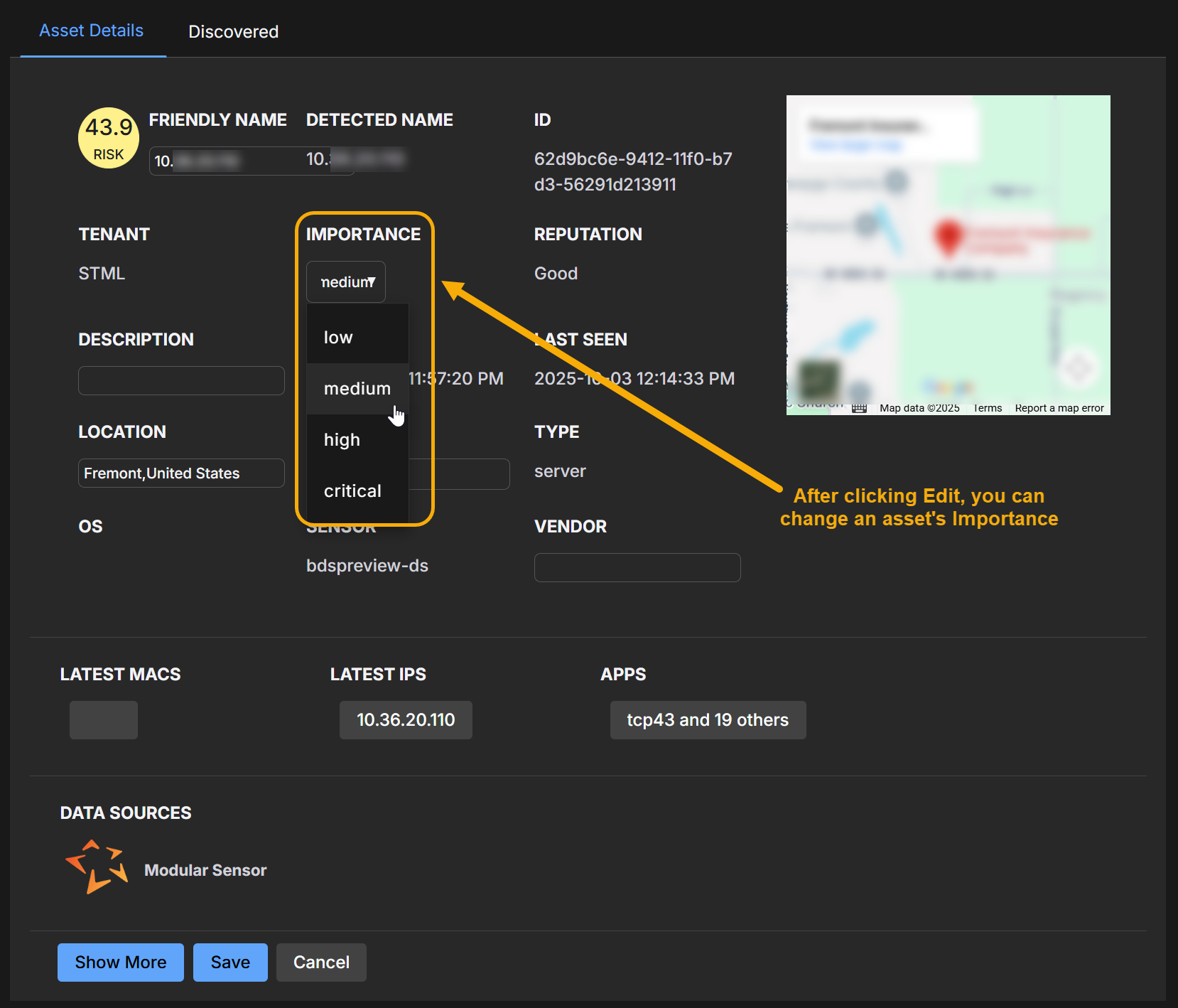 Stellar Cyber assigns each asset an importance level that reflects its criticality to the organization. By default, the system treats assets as medium importance unless otherwise specified.