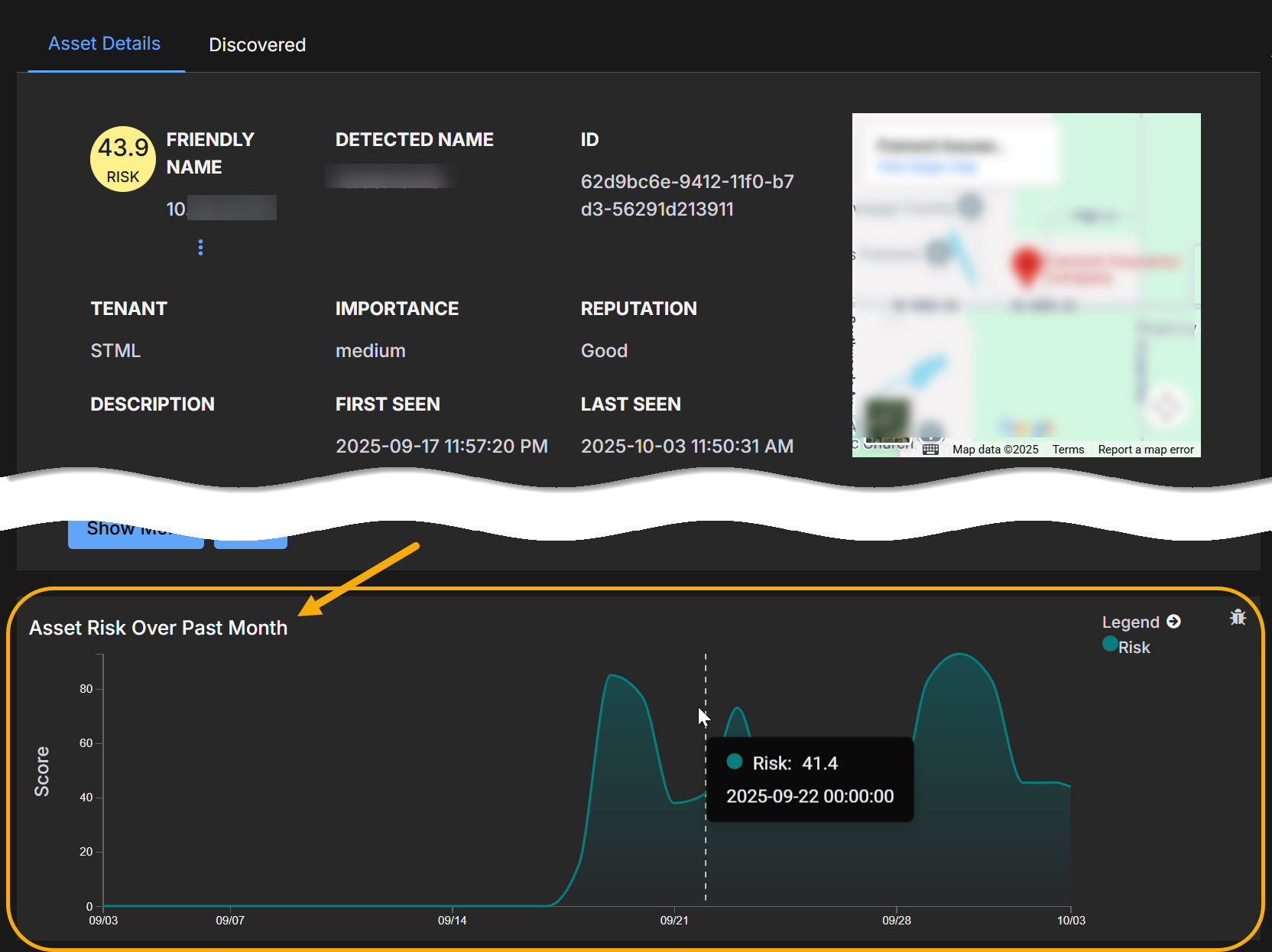 Risk scores are recalculated every ten minutes and reflect the most recent 24 hours of activity, so they always represent current conditions. In addition, Stellar Cyber maintains a score history in the Asset Details page so you can monitor trends in score changes.