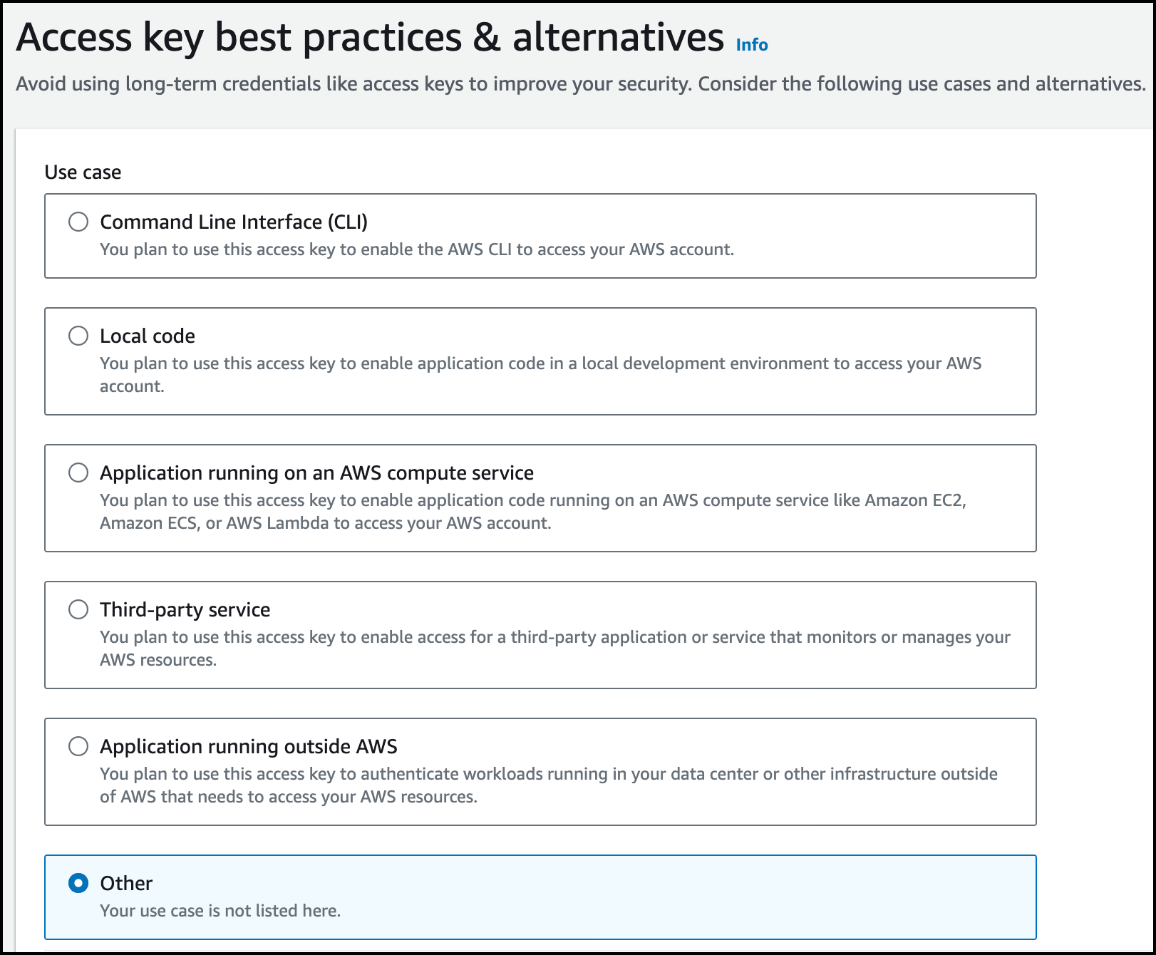 12. Choose the Auth Method to use Access Key / Secret Key or IAM Role.