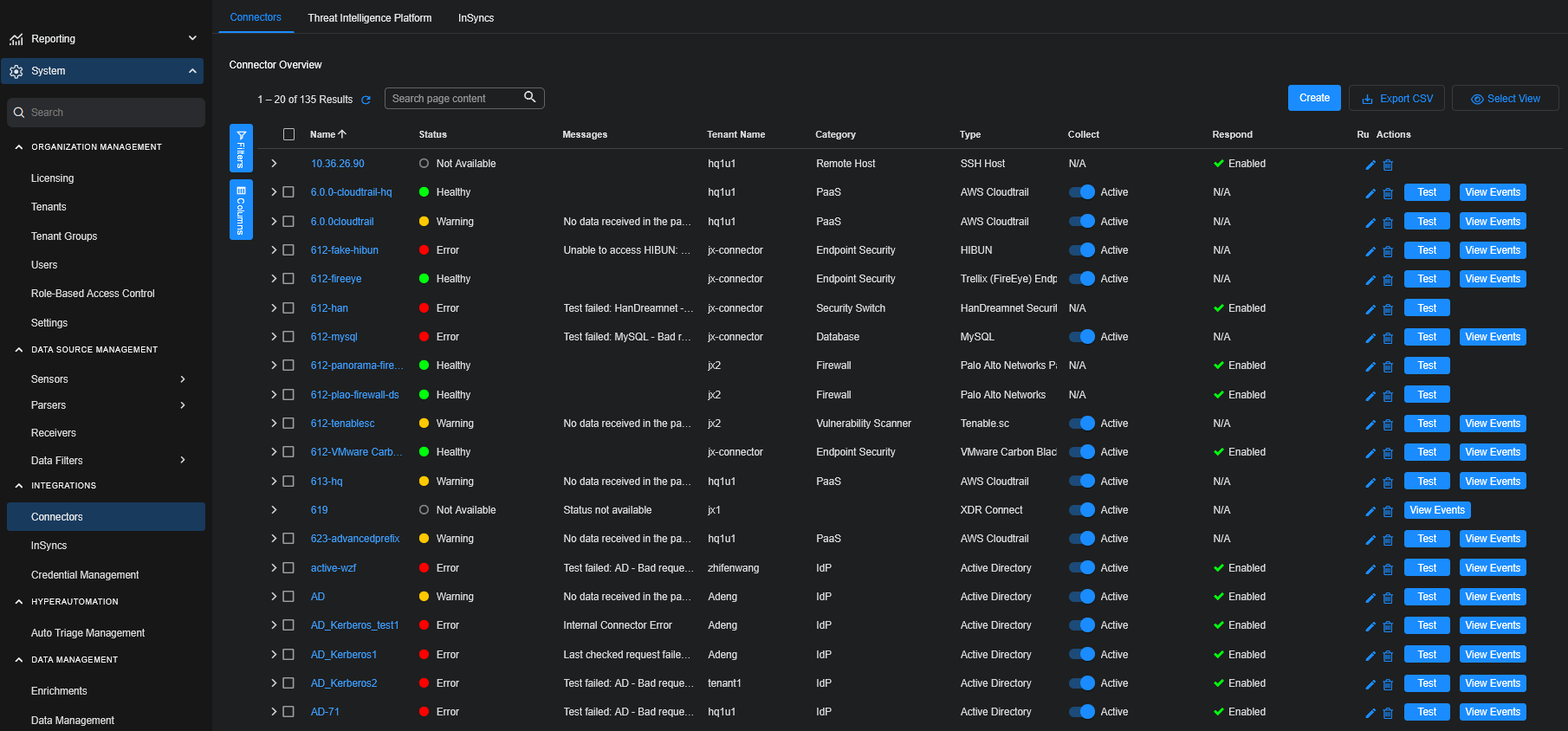 1. Click System | INTEGRATIONS | Connectors. The Connector Overview appears.