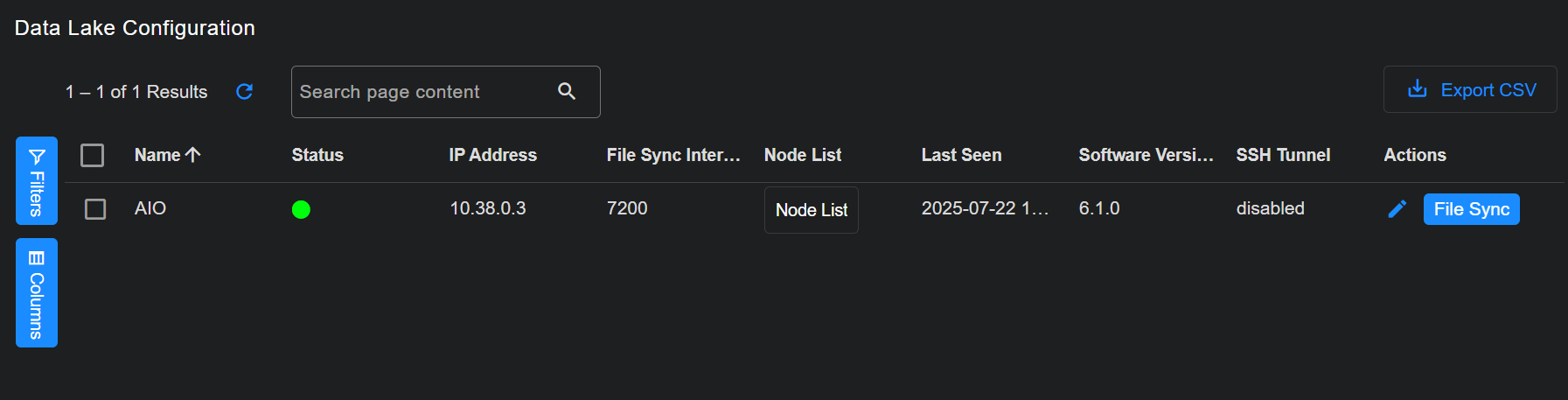 • Status – The status of the Data Lake. A green dot indicates operational status.