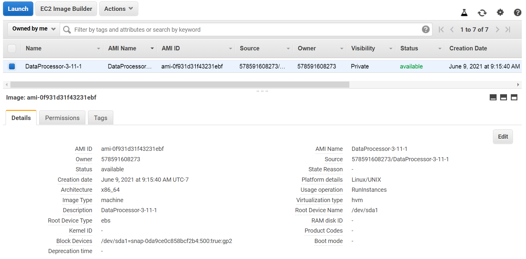 Locate the AMI for the Stellar Cyber DP. The DP AMI is named using a DataProcessor-x-x-x format, where the x-x-x indicates the version number (for example, DataProcessor-4-3-5).
