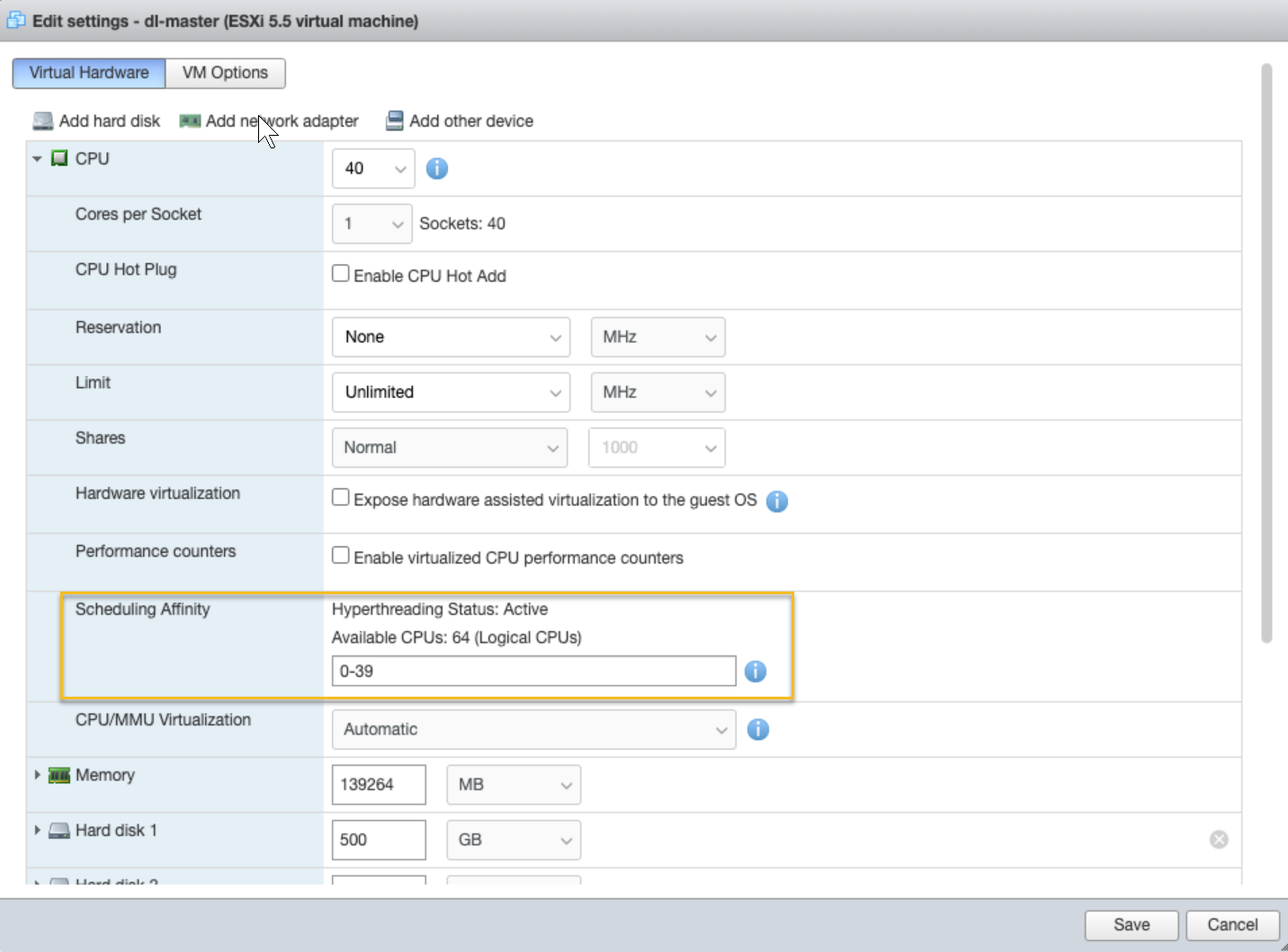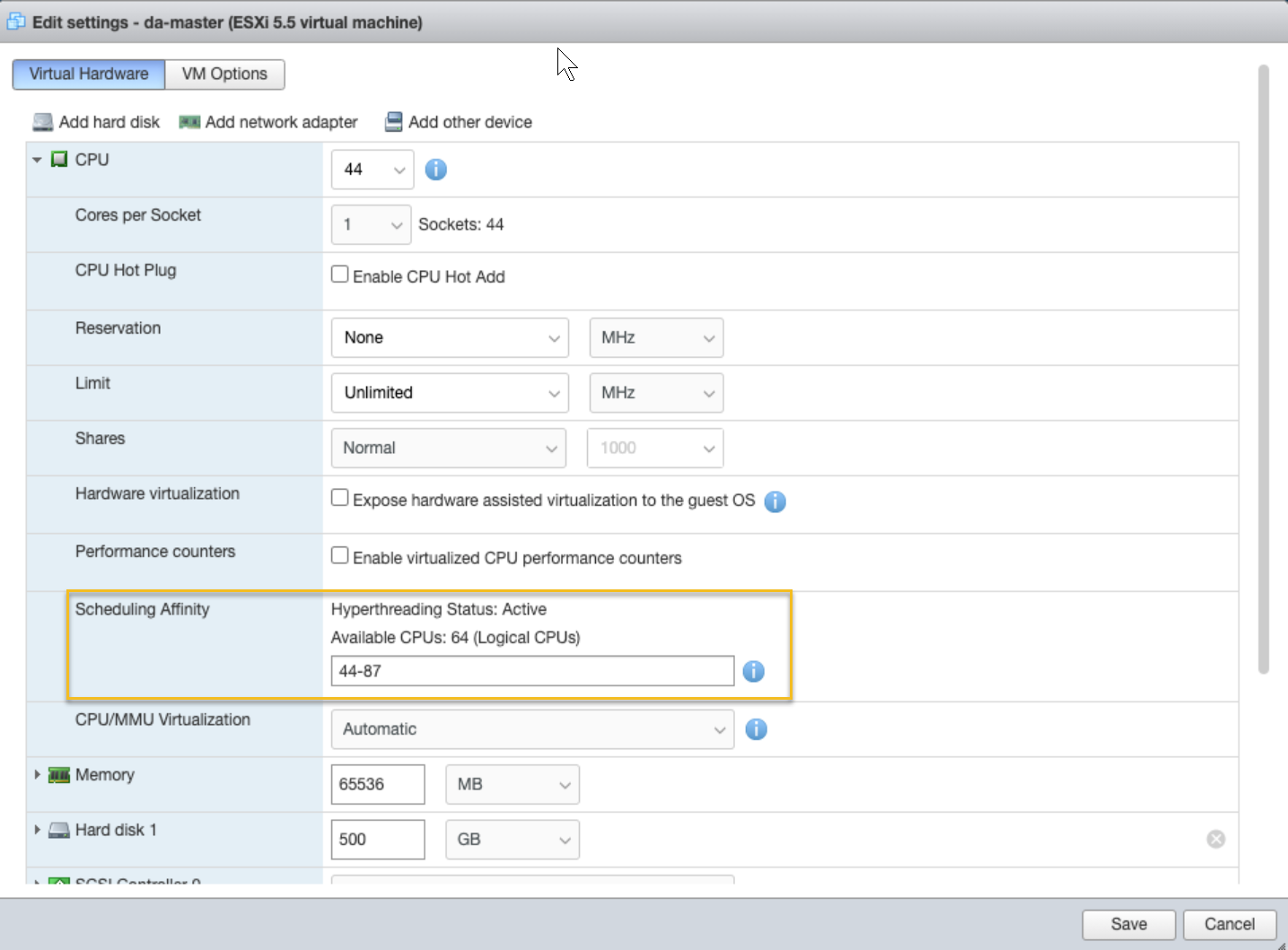 The Scheduling Affinity option described in this section was intentionally removed from the vSphere Web Client UI starting in vSphere 7.0 Update 2 and is not available in vSphere 8. You can still use the instructions in this section to configure CPU Scheduling Affinity in vSphere Web Client UI versions prior to vSphere 7.0 Update 2.