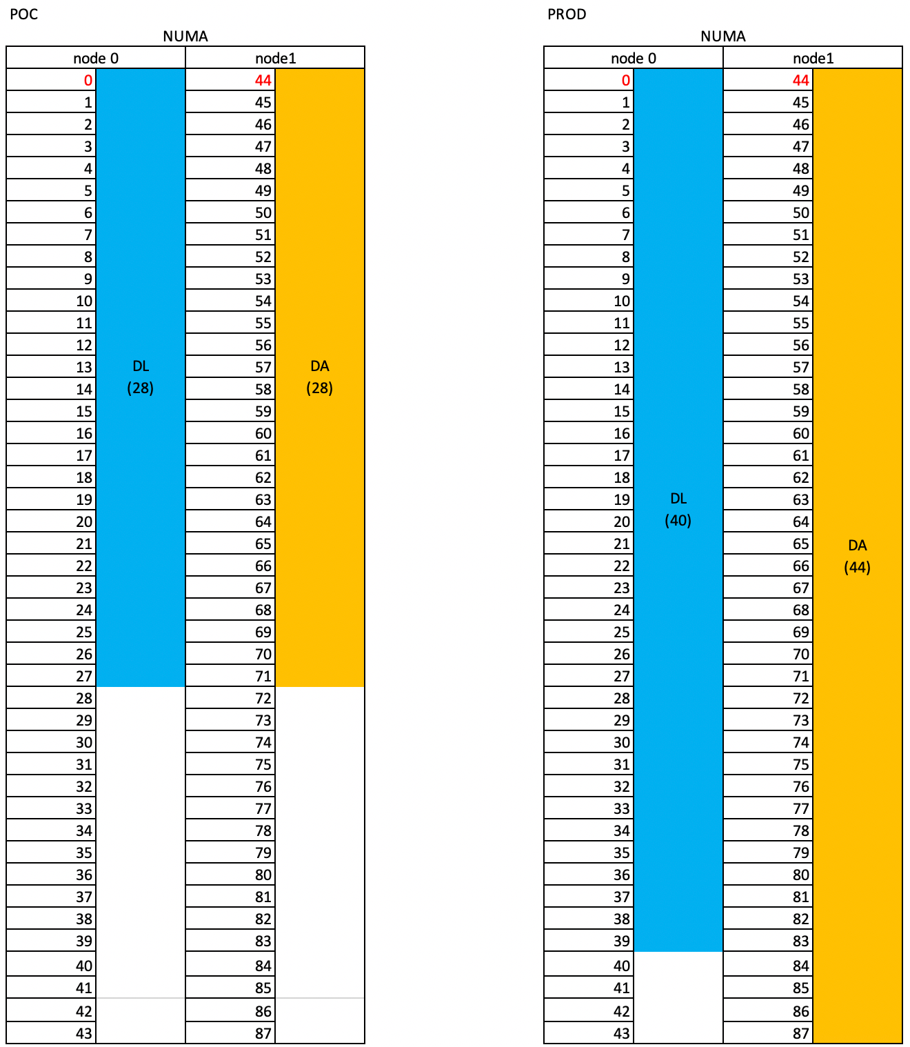 • DA – 28 CPUs configured on NUMA Node 1 from 44-71.