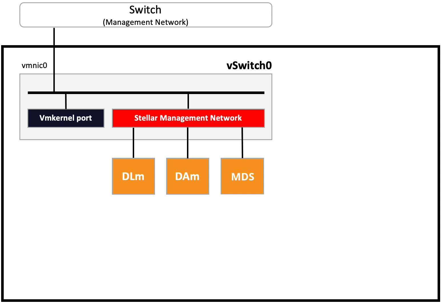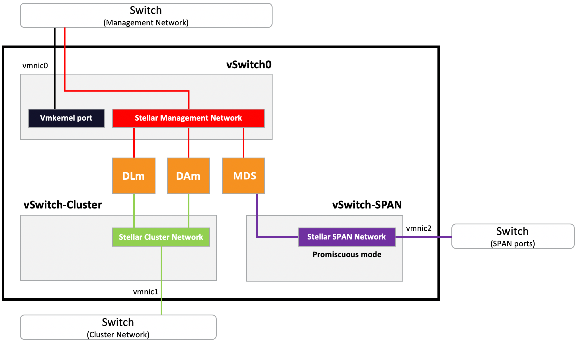 • The server must operate as a dedicated server for ESXi and a single Stellar Cyber deployment's virtual machines, as summarized in the figure below: