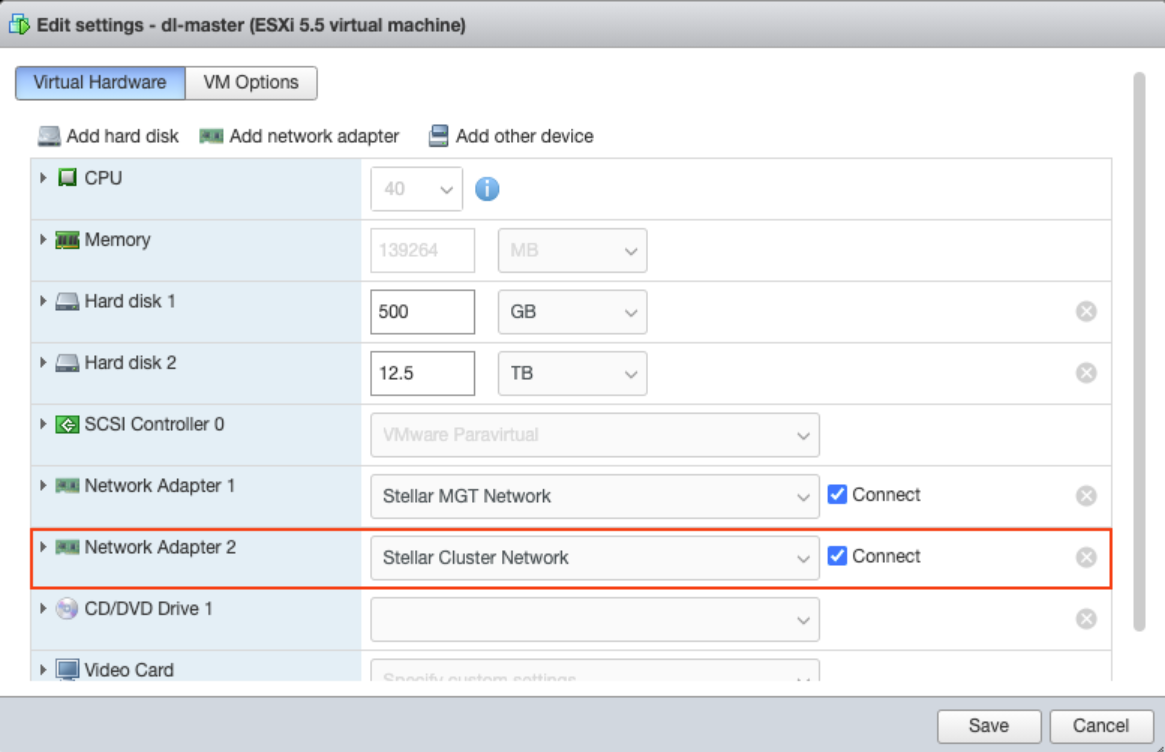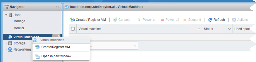 • You can install all three of the VMs in the same datastore if there is sufficient space for both the VMs and the 12+ TB required for the Data Lake's ElasticSearch data. However, Stellar Cyber recommends that the Data Lake uses a dedicated datastore.