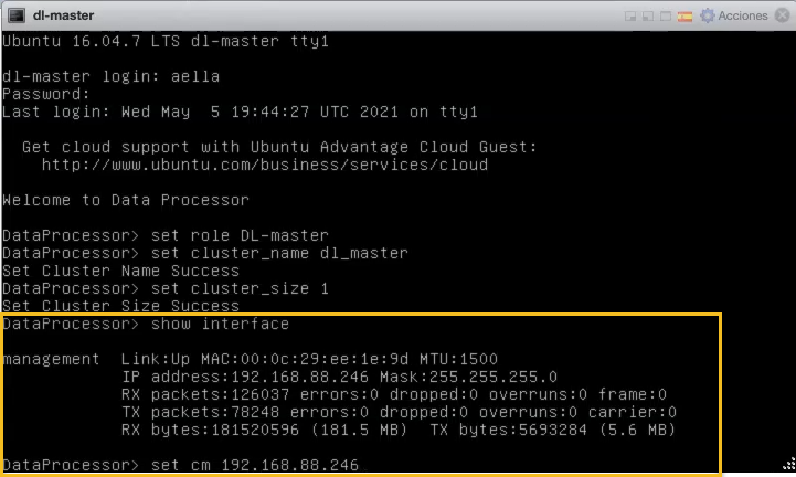 6. Specify the IP address of the Data Lake Master VM's management interface with the following command: