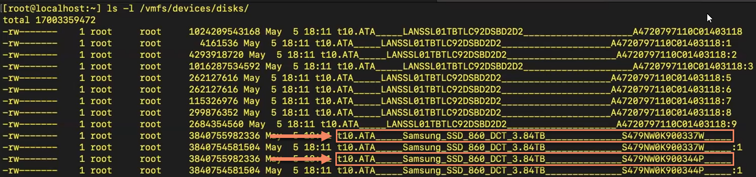 2. Use the following command to list the disk devices that can be managed by partedUtil: