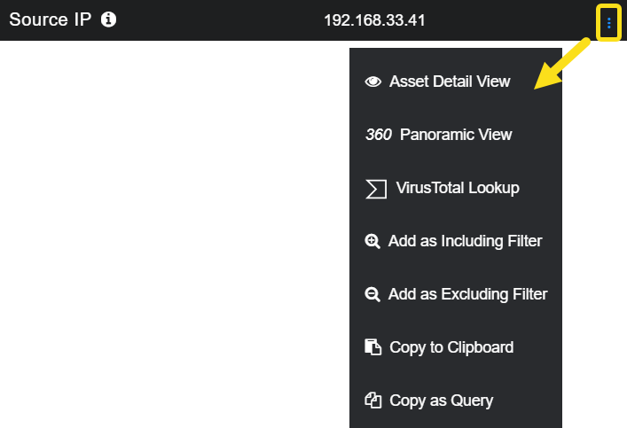 Depending on the type of data displayed, you may have access to more complex options for drilling elsewhere in Stellar Cyber, as described in Performing Field Actions and illustrated below.