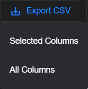 Click Export CSV to download the table as a CSV file, suitable for import to a spreadsheet application. You can choose to export the table with the displayed columns only, or all columns, even if not displayed.
