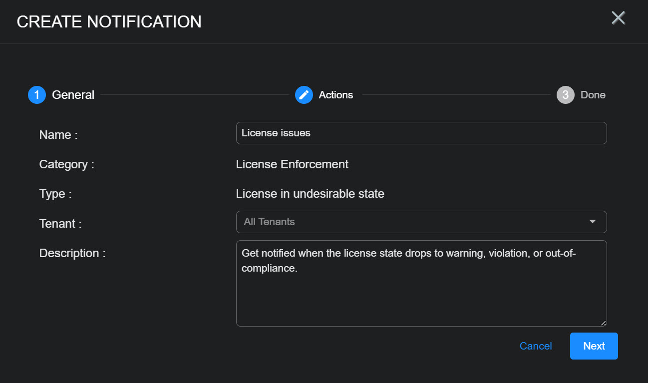 License Enforcement License in undesirable state Get notified when the license state drops to warning violation or out-of-compliance. Enabled