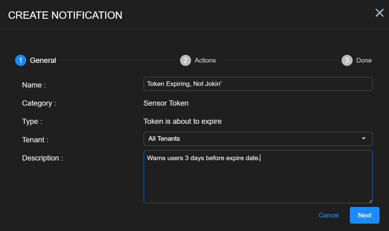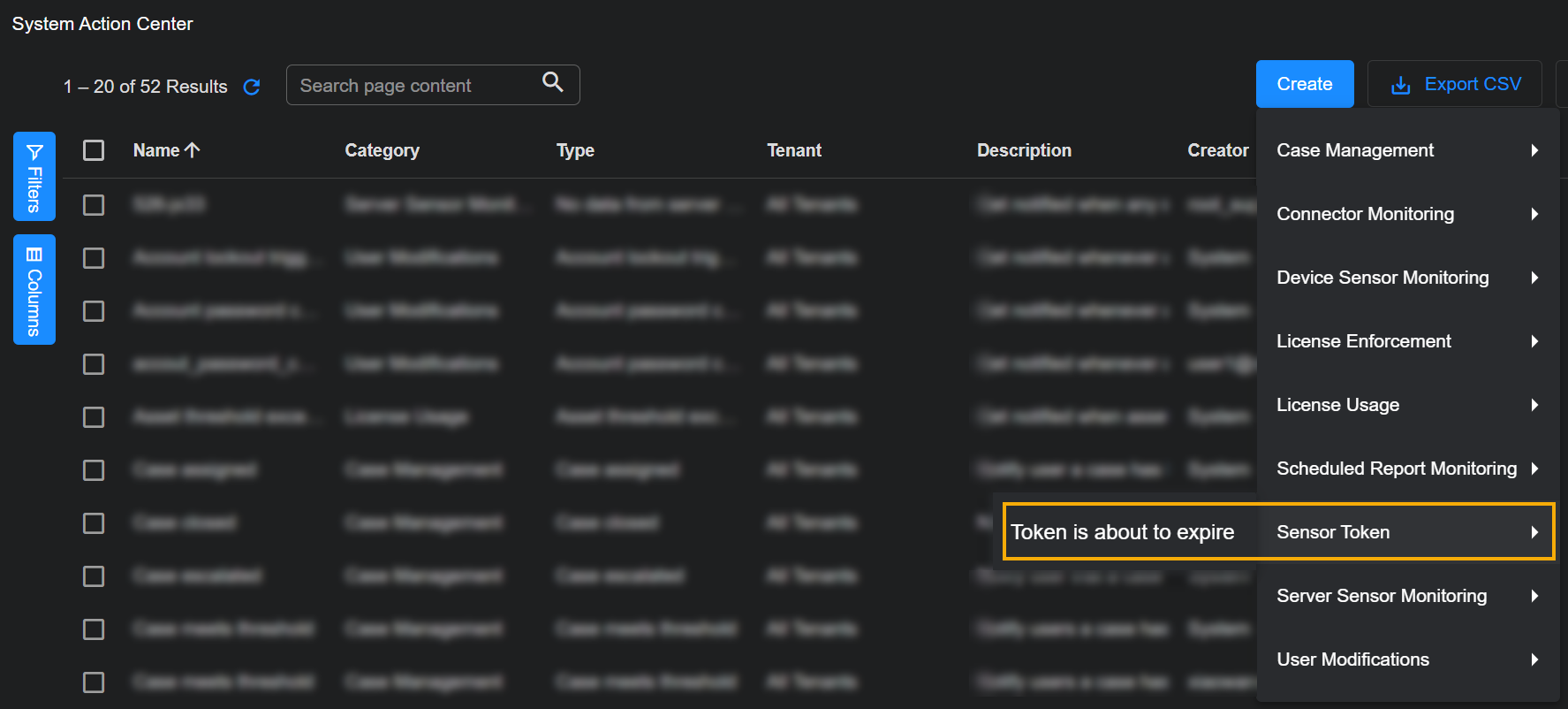• Sensor Token – Get notified when a token used to authorize sensors is about to expire.