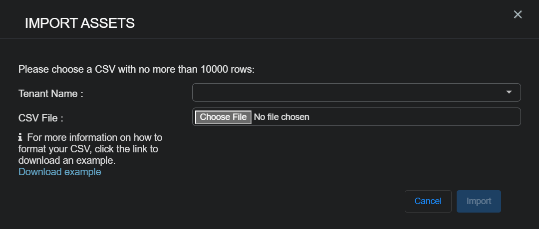 hostname,ip, andmacfields are included and that no reserved fields (such asvlan,risk_score, andvuln_score) were added. If the file is valid, the Import button activates. -