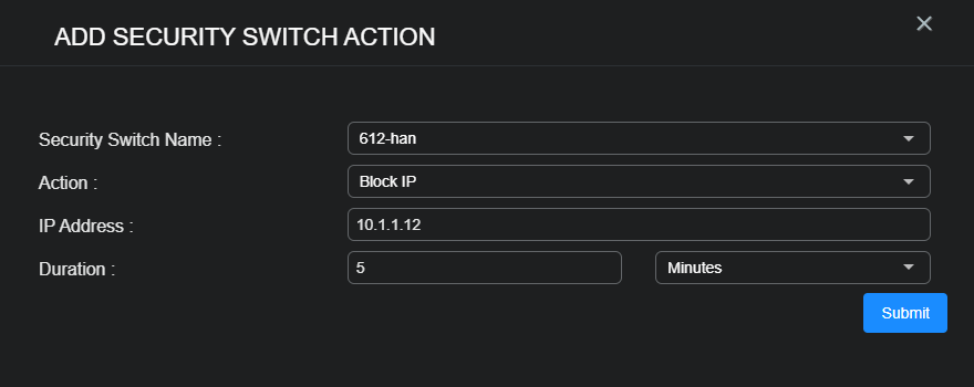 2. Choose a switch from the Security Switch Name drop-down menu, which includes all the security switches configured in your Stellar Cyber Platform.