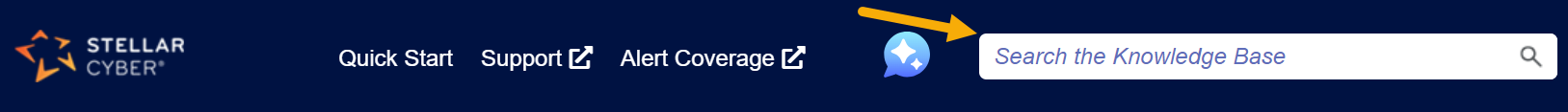 In addition to the search capability described in this topic, the knowledge base also includes Stellar Cyber Chat, an AI-powered tool that lets you use natural language questions to receive expert guidance and citations from the KB. You can use multiple different languages with Stellar Cyber Chat, including Japanese, Korean, Italian, French, and Spanish, in addition to English. Use the drop-down panel at the base of the Stellar Cyber Chat window to change the language in which the chatbot responds.