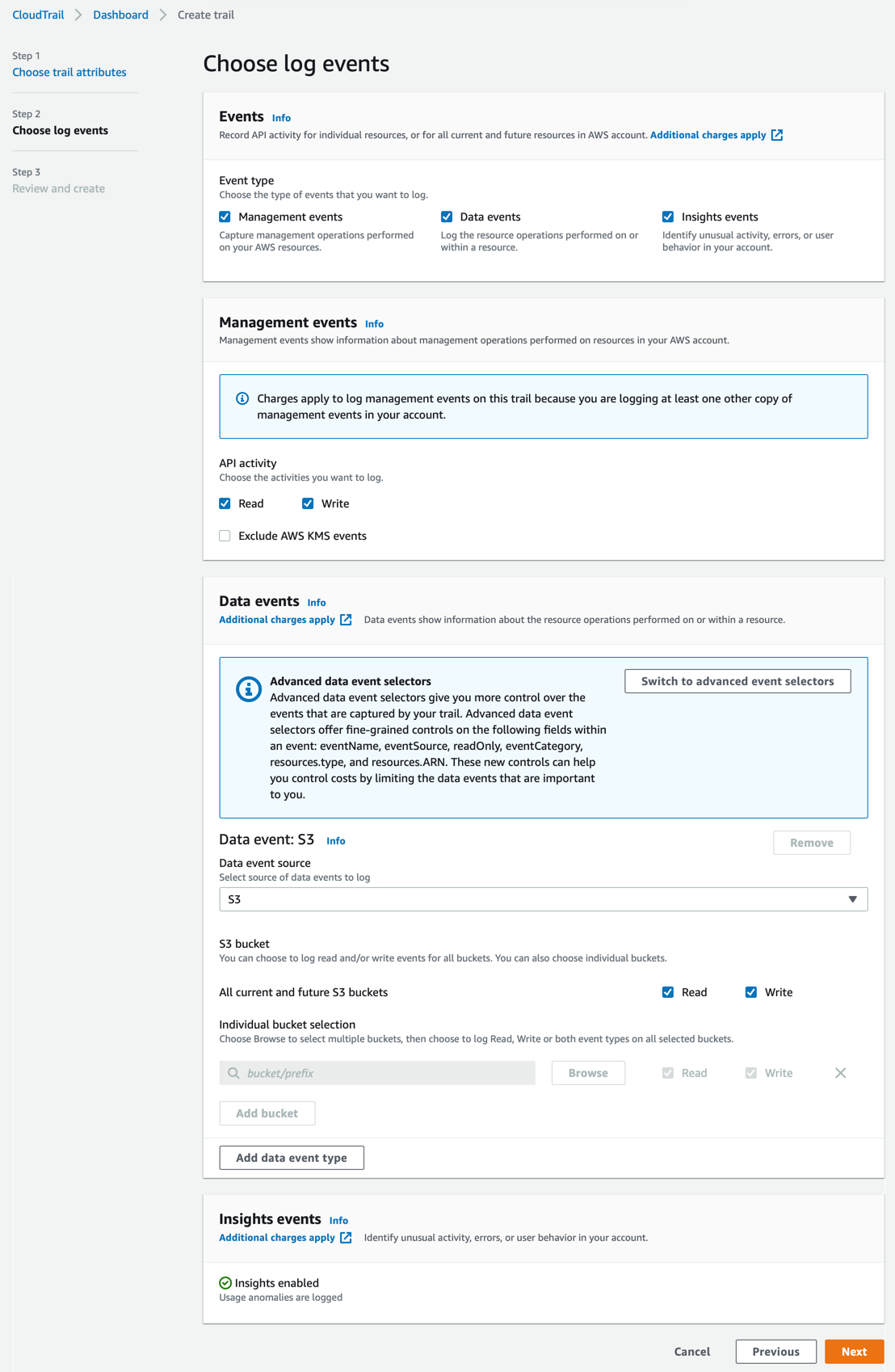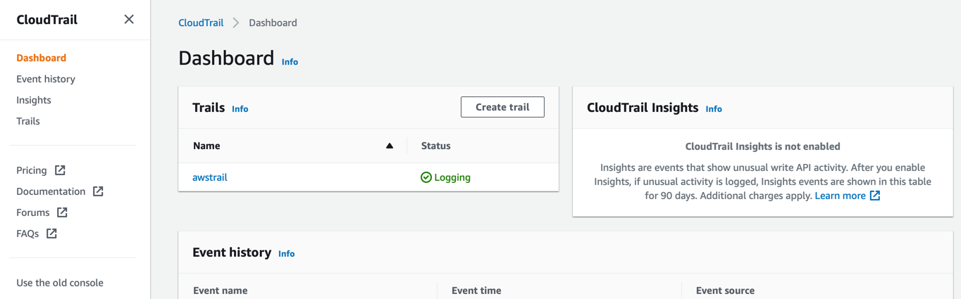 - Create an AWS CloudTrail trail