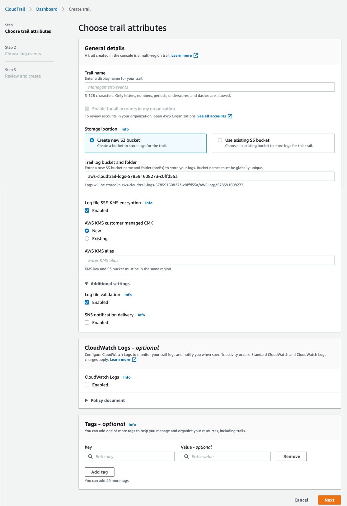 Creating the AWS CloudTrail Trail