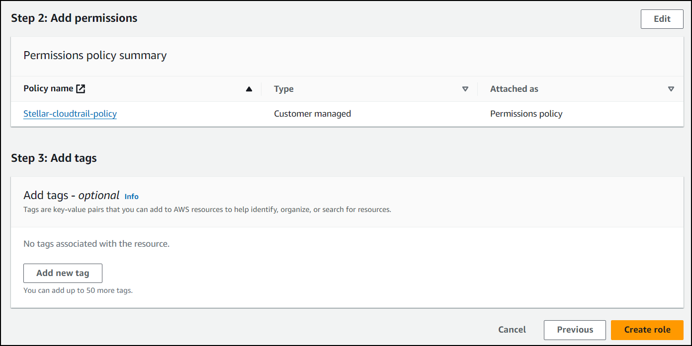 Give your policy a name to associate it with Stellar Cyber, then choose Create policy.