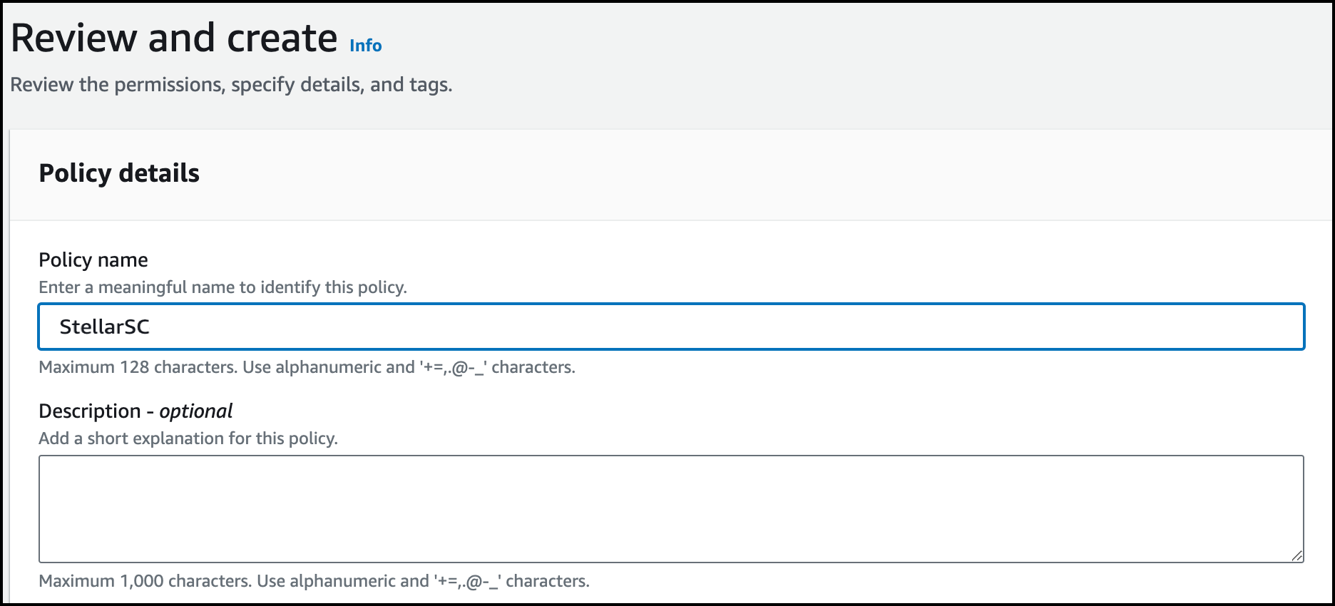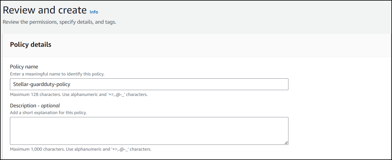 7. Give your policy a name to associate it with Stellar Cyber, then choose Create policy.
