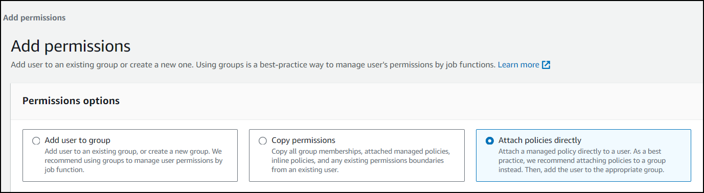 4. Select Attach policies directly.