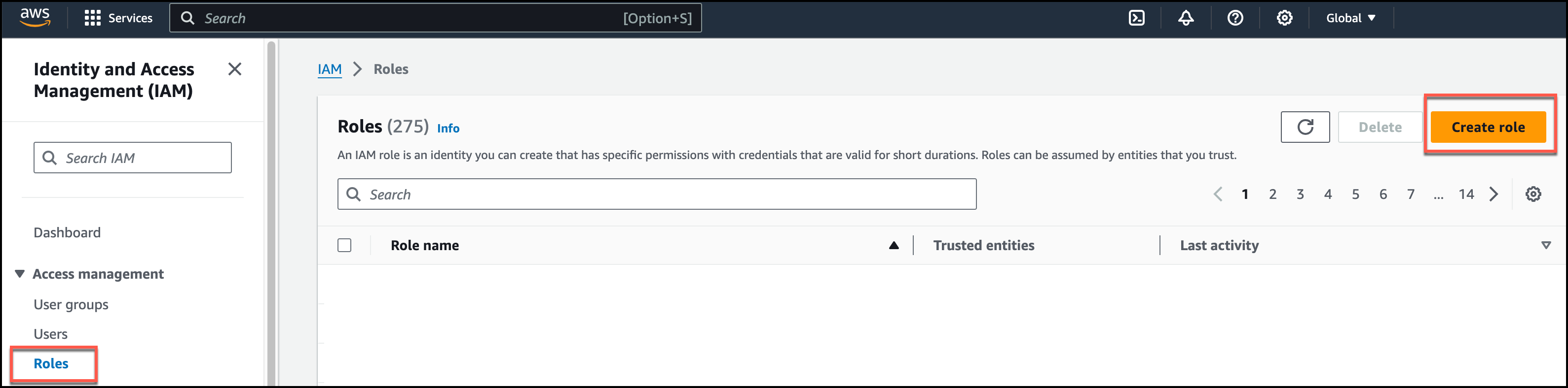 1. In the AWS Management Console, Services, navigate to Identity and Access Management (IAM) and click Roles.
