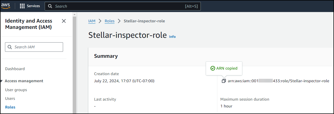 11. Copy your ARN, which you will need when configuring the connector in Stellar Cyber.