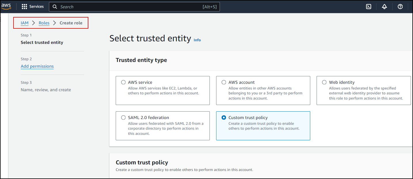 3. Click Custom trust policy.
