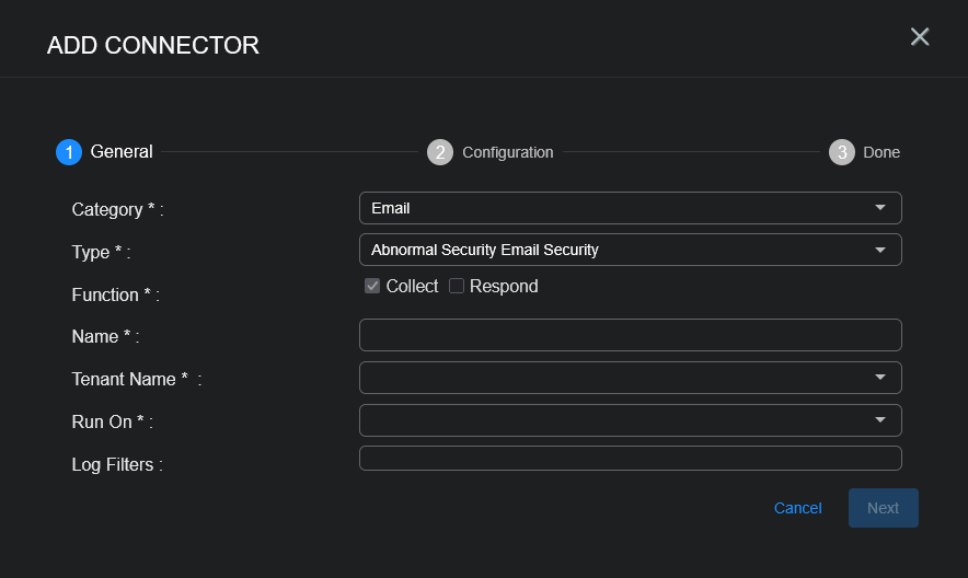 To add an Abnormal Security Email Security connector in Stellar Cyber: