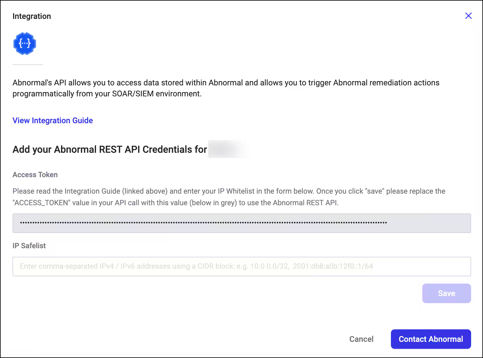 To generate an Abnormal Security Email Security access token, follow the guidance in the Abnormal Security documentation: