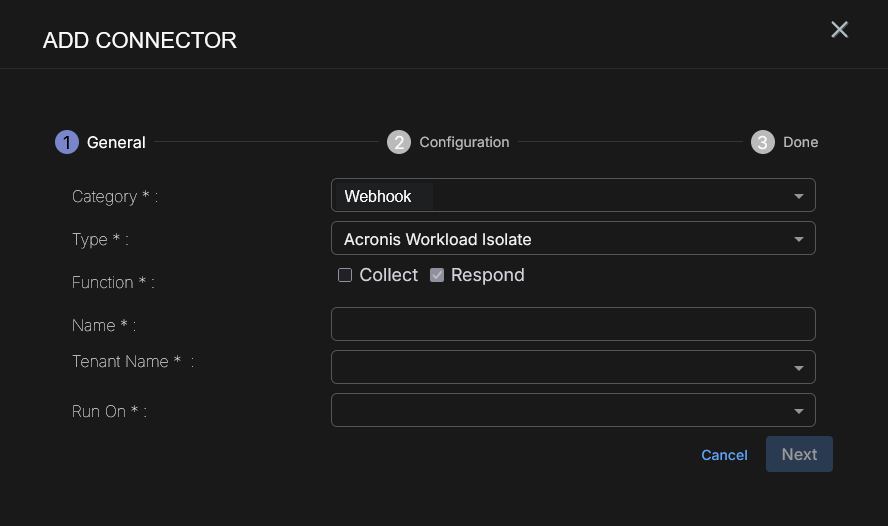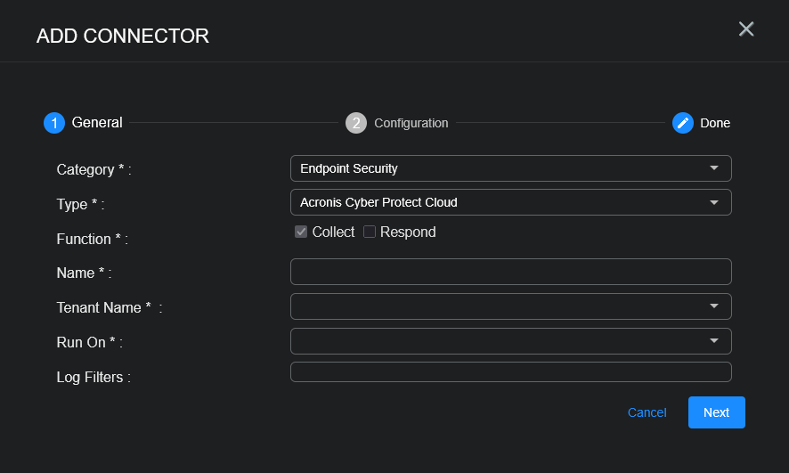 To add an Acronis Cyber Protect Cloud connector in Stellar Cyber: