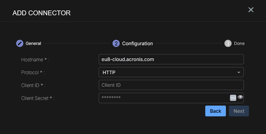 Adding an Acronis Cyber Protect Cloud Connector