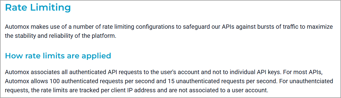 Note the following rate limit in the Automox documentation: