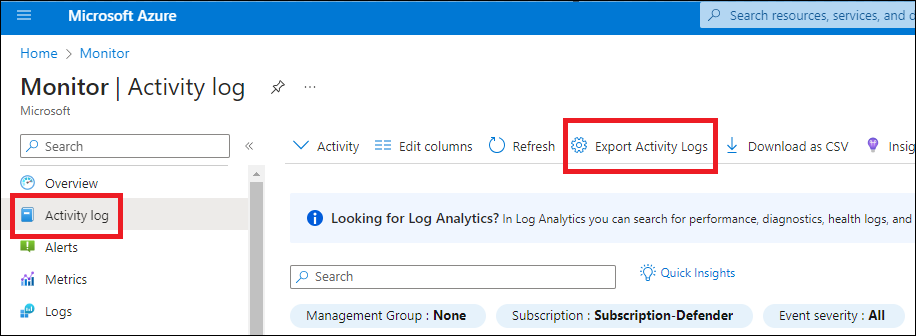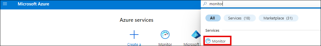 In Microsoft Azure, portal.azure.com, search for and select the Monitor service.
