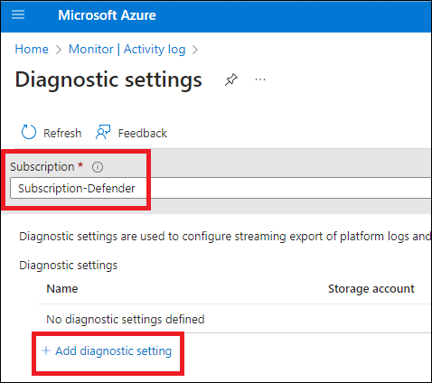 For the Diagnostic settings, select a Subscription and then click Add diagnostic setting.