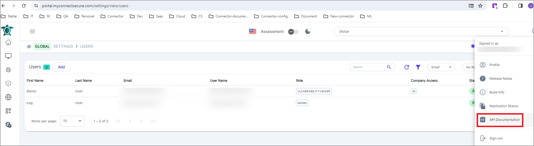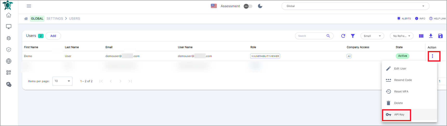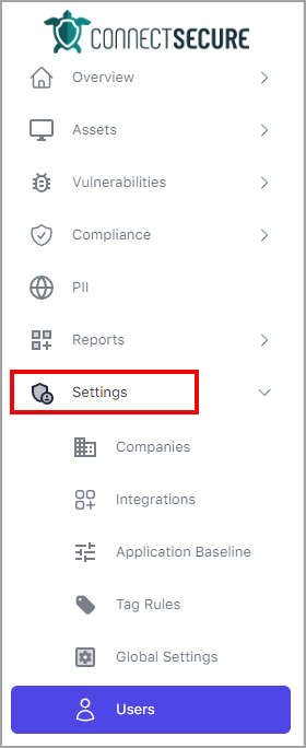 Log in to the portal and navigate to Global > Settings > Users.