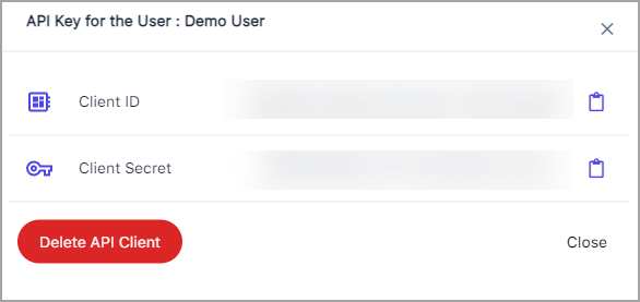 For an existing user, select Action > API Key.