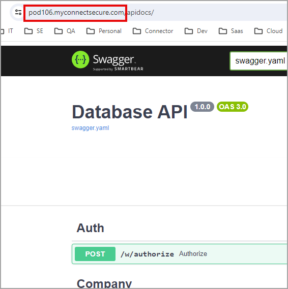 Locate the URL, which in this case is https://pod106.myconnectsecure.com.