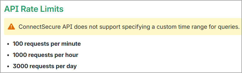 Note the following rate limits in the ConnectSecure documentation: