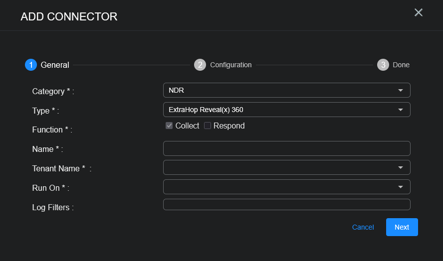 To add an ExtraHop Reveal(x) 360 connector in Stellar Cyber: