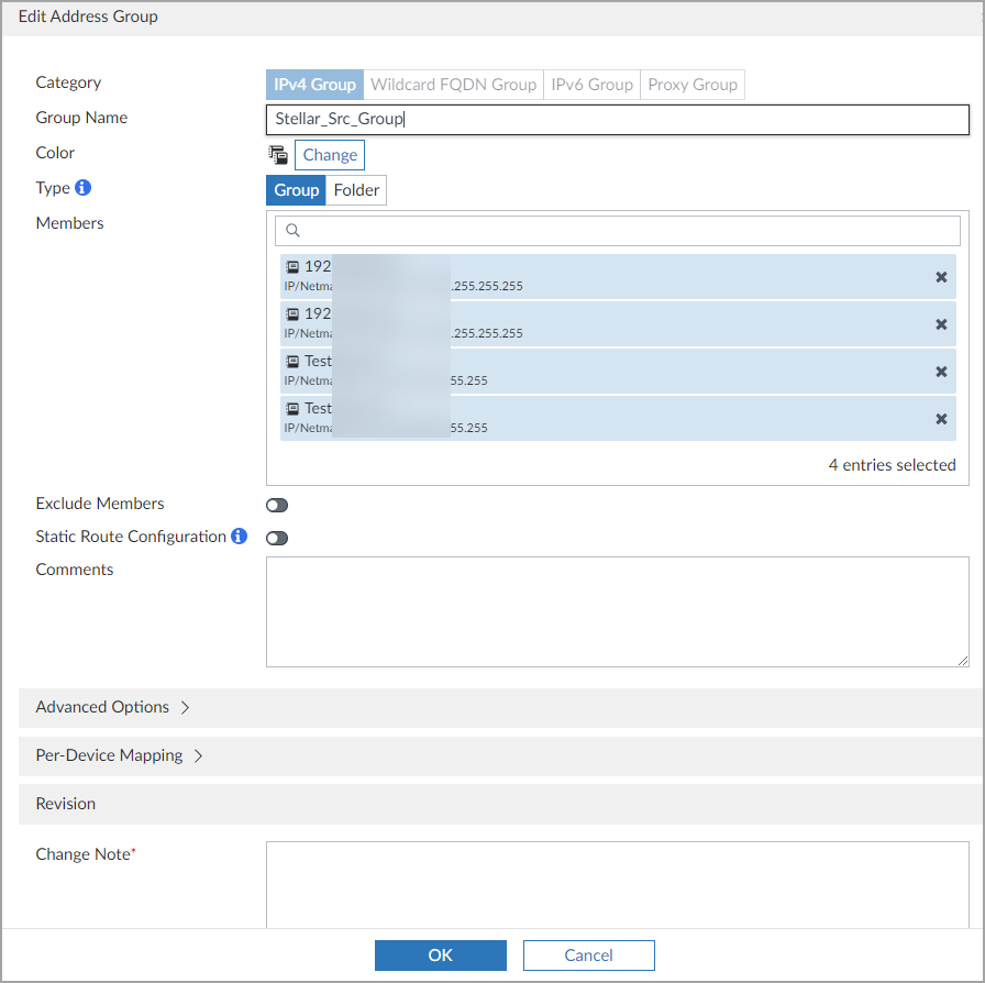 In the New Address Group window, enter a group name. In this example, it is Stellar_Src_Group.