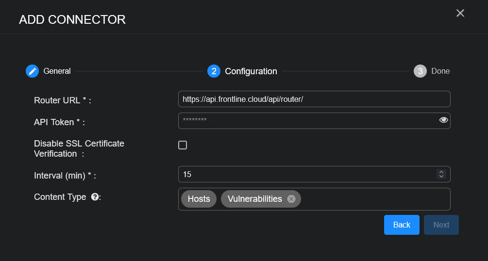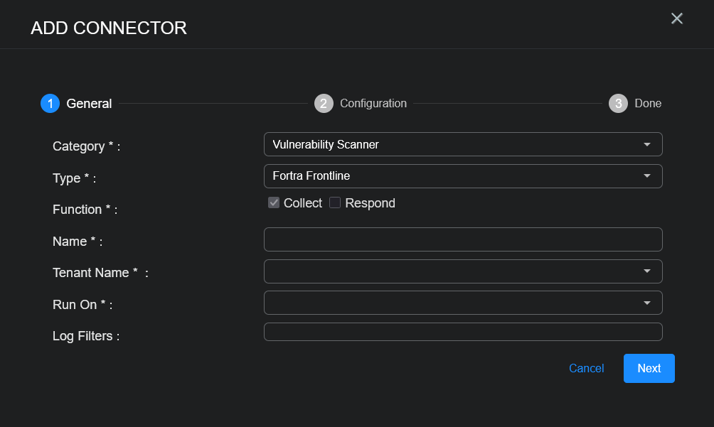 To add a Fortra Frontline connector in Stellar Cyber: