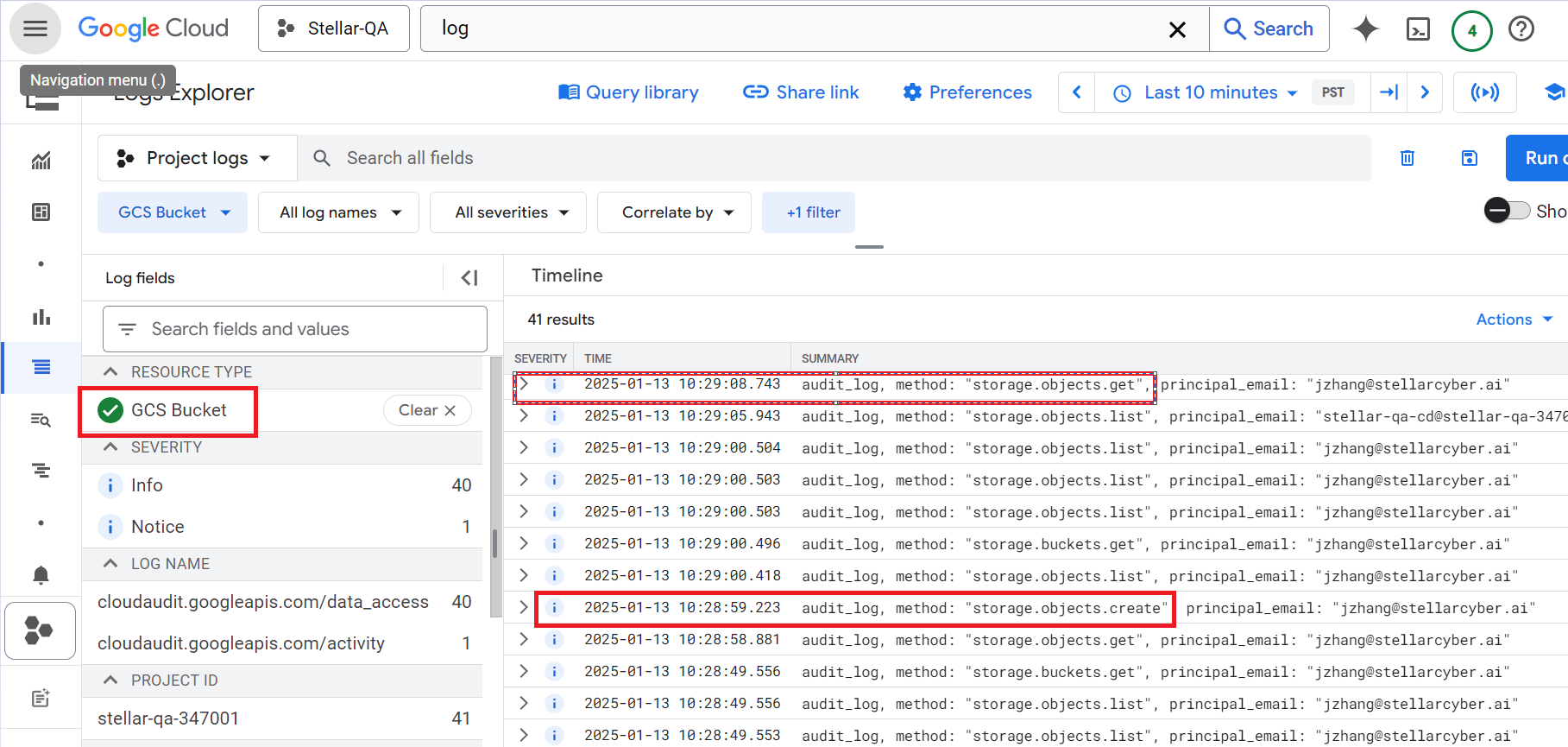 Navigate to the Logs Explorer and click GCS Bucket to view the bucket logs.