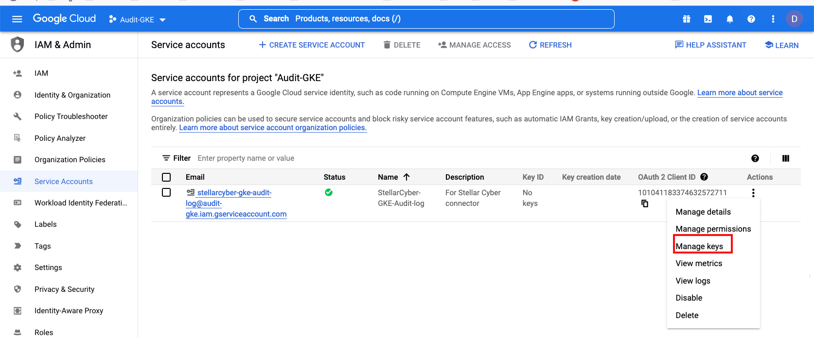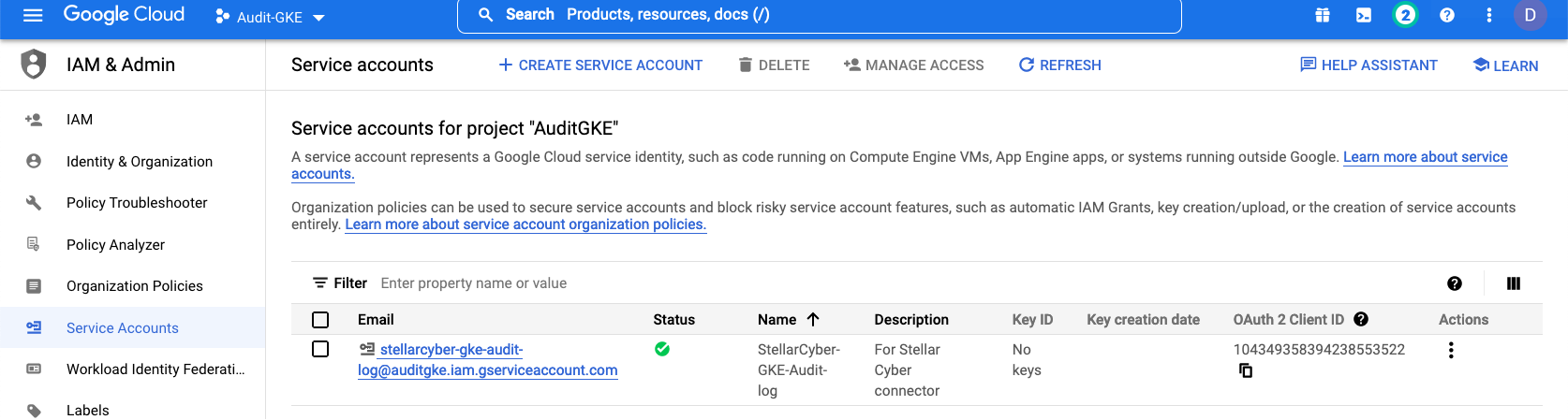 client_email "stellarcyber-gke-audit-log@audit-gke.iam.gserviceaccount.com"