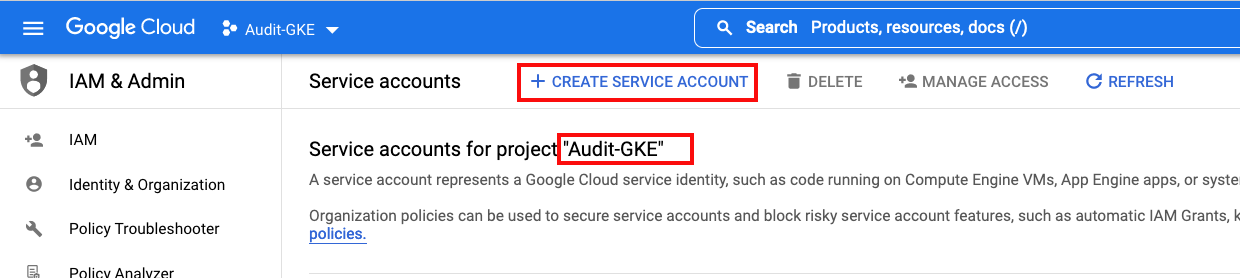 Still within the IAM & Admin > Service Accounts page, select the service account you created. (Verify that you are in your project.)