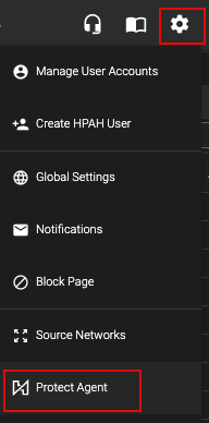 1. In the HYAS Protect UI, click the Settings (gear) icon, and then select Protect Agent.