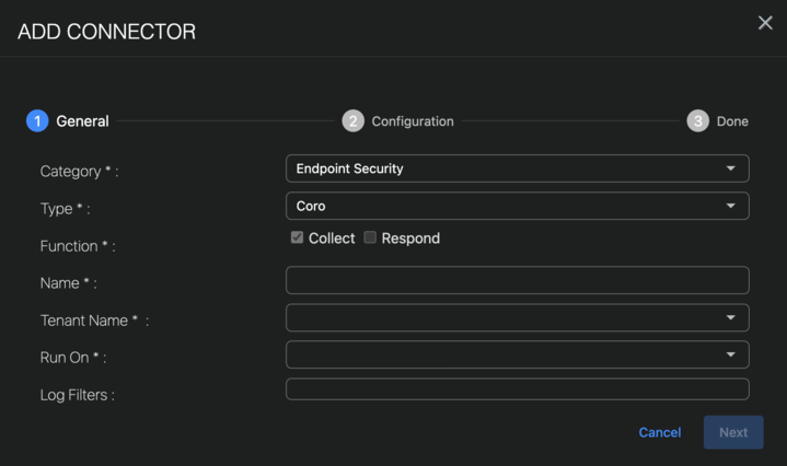 Stellar Cyber conducts a basic connectivity test for the connector and reports a success or failure result. A successful test indicates that you entered all of the connector information correctly.