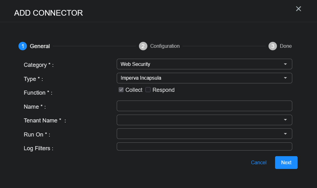 To add a Imperva Incapsula connector in Stellar Cyber: