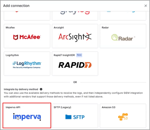 Scroll down and select Imperva API.